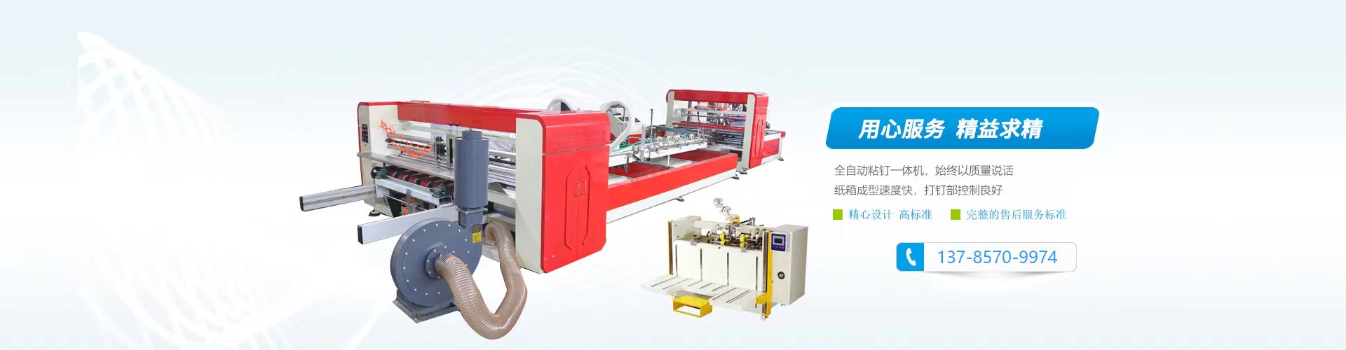東光縣匯科苑紙箱機械制造有限公司是一家生產經營全套紙箱包裝機械設備為主的新興企業,是紙箱機械|紙箱包裝機械|印刷機及其他紙箱設備的廠家!主要經營: