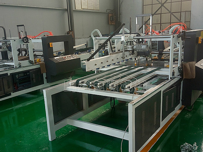 全自動粘箱機是從紙板送入、糾偏、痕線整形、涂膠、折疊、加壓、對正、計數排出等工序全部由機械自動一次完成的機械裝置。它的特點就可使紙箱企業減少對大量熟練粘箱工人的依賴,節省工作場地,又大大提高了工作效率和產品質量。全自動粘箱機的前端能夠連線上印式或下印式的水印開槽模切機,后端能夠連線全自動捆包機和全自動碼垛機。